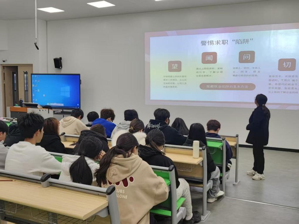 2025年12月3日下午,建筑工程学院在匠心楼举办“求职防坑指南:法律为你的 offer 保驾护航”题讲座。本次活动由黄丽珍老师主讲,吸引50名即将毕业的学生到场参与,通过法律视角解析求职过程中的风险点与应对策略。