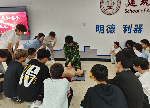 在随后的现场教学环节,姚浩结合部队所学,向同学们示范讲解了心肺复苏、外伤包扎等基本急救技能,指导大家进行实际操作练习。通过“理论+实践”的生动教学,同学们在提升国家安全意识的同时,也掌握了实用的应急自救互救能力。