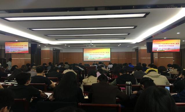 为深入学习贯彻新修订的《中国共产党纪律处分条例》,切实加深对《条例》的认识和理解,10月19日下午,校纪委组织了《条例》的专题学习。各基层党组织负责人、党务干部及专兼职纪检监察干部参与了学习。