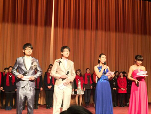 晚会共12个节目,全场以专业语种英语或日语来表达。1.合唱《雪绒花》2. 歌伴舞《Jingle Bell Rock》3.日语短剧《事情的成败取决于人》4.歌伴舞《世界唯一仅有的花》(日语)5.合唱《do rel me》6.诗朗诵——《youth》7.日本舞8.英语谈判9.歌曲串烧10.华尔兹舞蹈11.合唱《whatever will be》 开场舞《cry eye》充分调动了全场的气氛,大合唱《whatever will be》唱出了毕业生惺惺相惜依依不舍的情谊,精彩的演出深深感染着观众。外语诗朗诵、英语谈判、日本舞蹈、华尔兹、日语短剧、外语歌曲串烧等节目更是让整场晚会精彩纷呈,高潮迭起。 整场晚会结合专业教学开展第二课堂活动的成果,由学生通过专业所学融会专业技能与素质进行汇报表演,展现了应用外语系学子优秀的专业技能和外语风采。 |