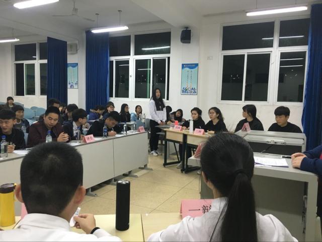 比赛中代表正方的商务英语一班与代表反方的商务英语三班以“德治为先”还是“法治为先”这一辩题展开了激烈交锋。在双方一辩精彩开篇后进入攻辩环节。正反方的攻辩选手抓住双方陈词中的漏洞,提出一个个犀利的问题。接下来的自由辩论带来了前所未有的激烈争论,双方唇枪舌剑、你来我往。最后,双方的四辩对本次辩论赛进行总结,并陈述了自己的观点。赛后,两方辩手握手言欢,展现“友谊第一、比赛第二”的参赛精神。本次决赛由反方商务英语三班获得了最终胜利。