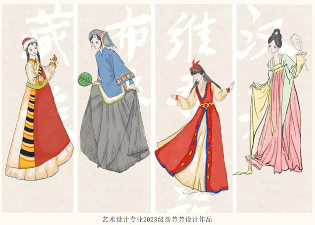 文化旅游学院发挥省级“双高计划”专业群建设优势,以“中华民族一家亲·同心共筑中国梦”为主题,指导艺术设计专业学生精心创作了一批反映各民族交往交流交融的主题文创作品。学生们在创作的过程中挖掘国家发展历程中共有共享的时代符号,通过艺术创作与表现,切实增强休戚与共、荣辱与共、生死与共、命运与共的共同体理念。