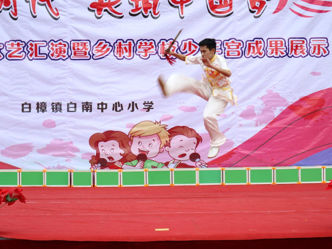 5月10日上午,闽清县白南中心小学少年宫举行乡村少年宫文艺汇演,我校进一步践行弘扬中华优秀传统文化进校园系列专题活动,通过我校武术运动队及健身气功运动队学生与少年宫学生携手同台演出,开展传统武术、健身气功展示,现场进行传统武术健身文化熏陶与体验。此次活动充分展示了中国传统武术及健身气功的魅力,给少年宫师生留下深刻的印象。同时少年宫小学生的才艺展示朝气蓬勃,让人赏心悦目。
