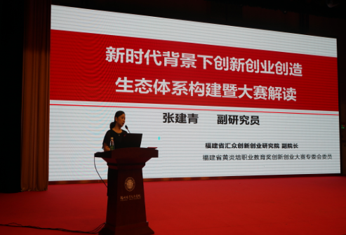 培训会上,刘松林副校长为张建青女士颁发了聘书,代表学校聘请张建青女士为学校创新创业导师。张建青女士作了题为“新时代背景下创新创业创造生态体系构建暨大赛解读”的报告,从“创新创业大赛意义”、“三创生态体系建设”、“创新创业大赛解读”等三个方面系统地阐述了“互联网+”大赛的内涵,并对大赛工作要求和竞赛规则做了详细的解读,对学校做好第五届“互联网+”大赛工作提出具体指导意见。