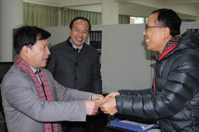 2014年1月14日,院党委书记陈承茂在院工会副主席杨震同志的陪同下看望慰问李晋老师,详细了解他在下乡挂职和在效能办的工作情况,高度赞扬他带病提前上岗,并亲切嘱咐要注意身体,祝他早日康复,送上慰问金和慰问品。