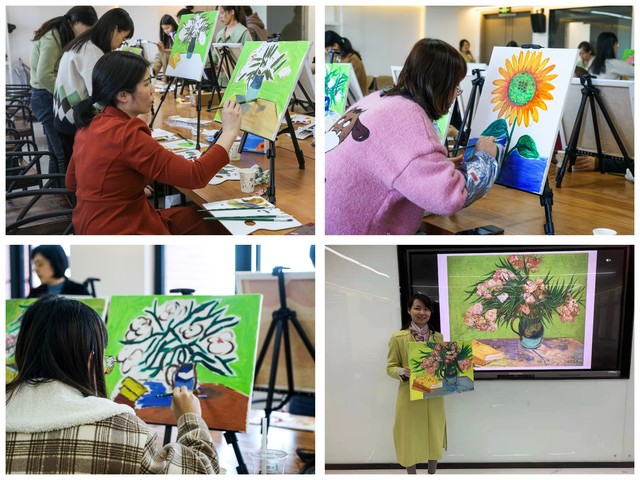 3月8日下午,插花、欢乐福跑、服饰穿搭、油画、八段锦等丰富多彩的体验活动分别在不同地点进行。