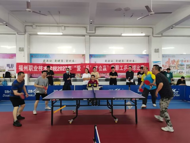 在总裁判员的指挥下,裁判、选手们各就各位,赛场上多桌对决同步展开。选手们时而大力扣杀,时而飞身救球,时而快手强攻,精彩场面层出不穷,精湛的球技赢得了在场观众的阵阵喝彩,充分展示了我校教职工敢拼会赢、积极进取的精神风貌。