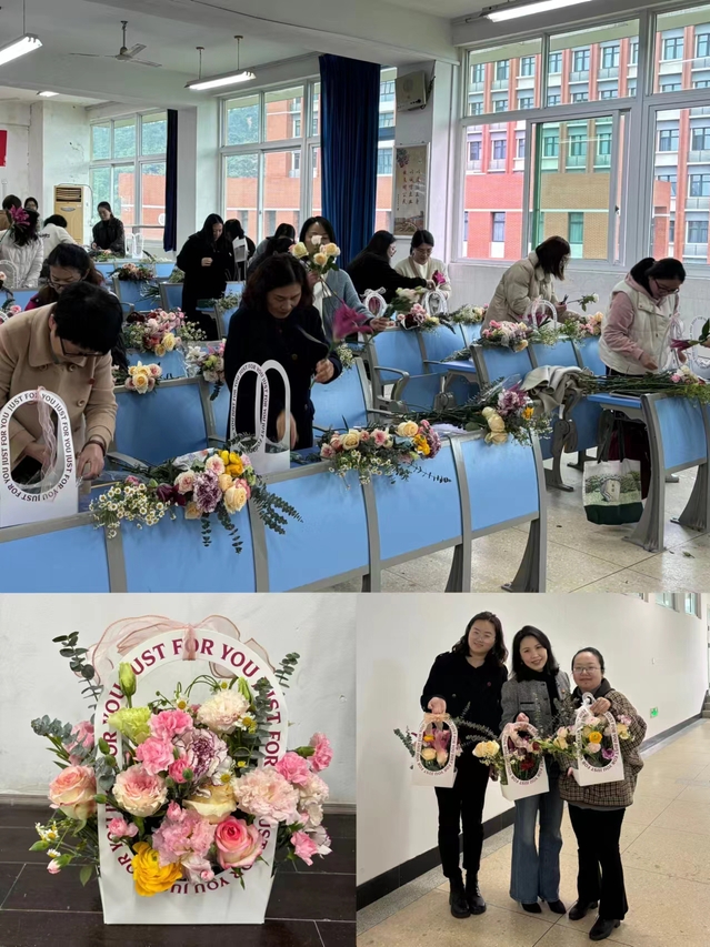 插花活动现场,在花艺老师的悉心指导下,女教职工们以饱满的热情投入到插花创作之中,原本普通的鲜花经过修剪、搭配、点缀等步骤,变成了色彩斑斓、独具匠心的花艺作品。大家在花香四溢的花海中享受一段芬芳慢时光。