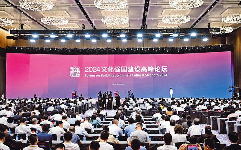 2024年5月23日,2024文化强国建设高峰论坛在广东深圳举办。本届论坛主题为“中国式现代化与新的文化使命”,由中央宣传部主办。中央宣传文化单位、各省区市和新疆生产建设兵团党委宣传部、部分文化企事业单位有关负责同志和有关智库专家学者等参加论坛。 新华社记者 邓华/摄