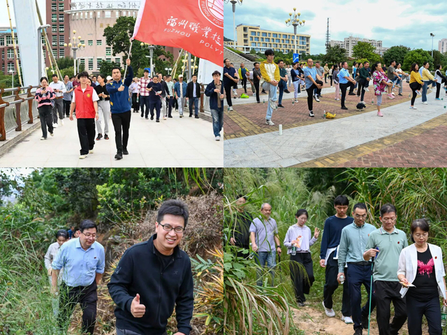 活动伊始,教职工们从励园广场集体出发,沿着后山步道缓缓前行。步道两侧,林木郁郁葱葱,秋叶宛如大自然精心调配的调色盘,青翠与金黄相互交织,为山间晕染出如诗如画的景致。老师们漫步其间,有的停下脚步,用镜头定格下醉人的秋景;有的畅聊教学工作中的趣事;有的分享生活里的点滴美好,爽朗的笑声在山林间久久回荡。