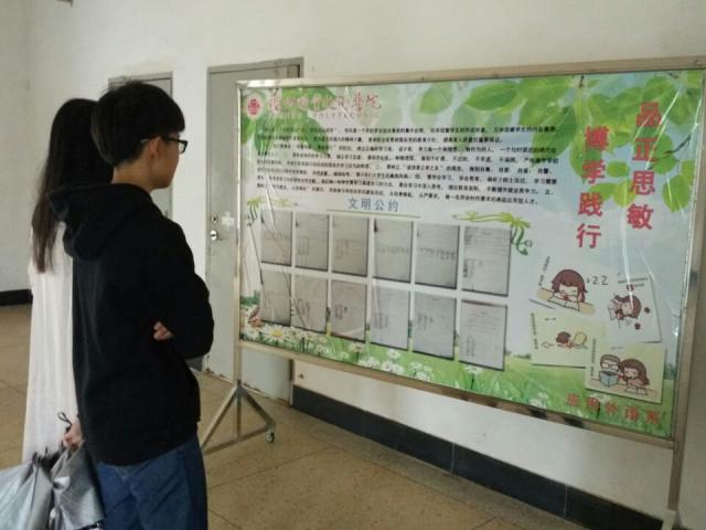 此次活动主要围绕“维护教室环境卫生”、“签署文明公约”、“不带早餐进教室”三方面进行。活动开始前,应用外语系以海报展示的形式,让学生对本次学风建设的主题有初步了解。接着各班学生签署文明公约,实现文明承诺。5月9日当天,学生党支部书记黄燕姿带领系自律会成员组织15级学生加入维护教室环境卫生的行列,让学生学会用实际行动践行文明。活动期间,各班班委监督学生早晨不带早餐、不穿拖鞋进班,严格控管学生不明现象的产生,促进各班学风建设。