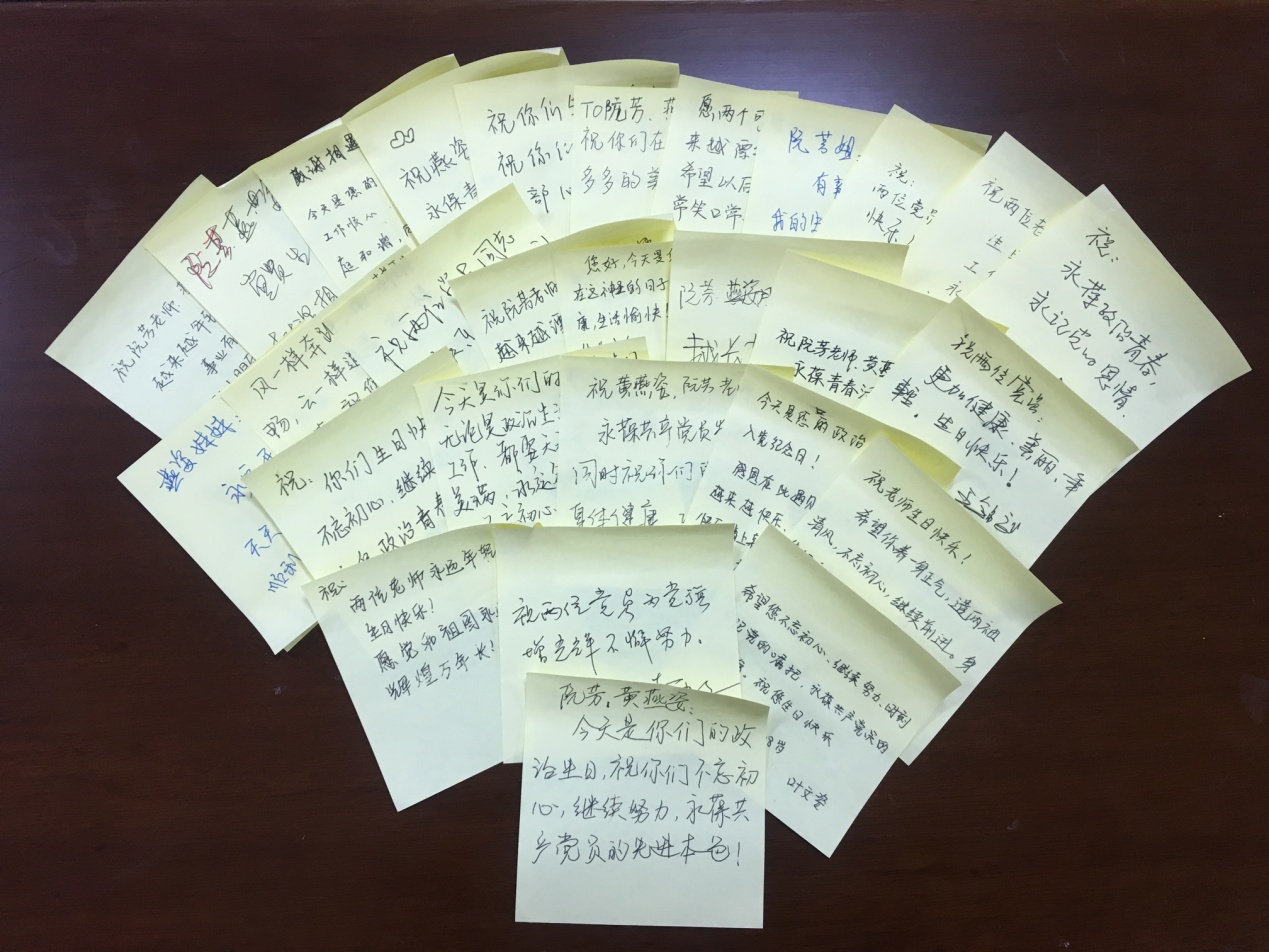 红色生日记心间,不忘初心跟党走 ---国际教育中心党总支开展“红色生日”主题党日活动 国际教育学院2017-12-06 为深入学习贯彻党的十九大精神,推进“红色领航工程”各项任务落到实处,增强党员的身份意识,切实提高系党总支的组织凝聚力和情感凝聚力,2018年1月3日,国际教育中心党总支在综合楼212会议室开展了以“红色生日记心间,不忘初心跟党走”为主题的党日活动。国际教育中心全体师生党员参加了本次活动。 活动中,过红色生日的两位党员首先谈了自己的生日感言,表示会永远牢记自己党员的身份,尽己所能为学校和系院发展贡献力量。接着每位党员在贺卡上写上自己的祝福语,向过红色生日的党员送上自己的生日赠言。接下来全体党员一起深情合唱“党啊,亲爱的妈妈”,党员们用心歌唱,真诚感谢党赋予了我们政治生命。优美动听的歌曲旋律,让红色生日活动气氛热烈而庄严。最后系党总支副书记李燕燕对本次活动进行了总结,向全体党员说明了党员责任意识的重要性,她说到,通过为党员过“政治生日”唤醒党员的入党初心,提醒大家不忘入党誓言,常思“当初入党为什么、如今在党做什么、今后为党留什么”,发挥党员先锋模范作用,争当系院改革发展、攻坚克难的排头兵。 本次红色生日会的成功开展,强化了党员的宗旨意识,通过建立党员“红色生日”活动制度,让每个党员牢记自己的“政治生日”,有利于强化党员的信仰意识、初心意识,充分激发每个党员内心的认同感、归属感、存在感。 (文/李燕燕)