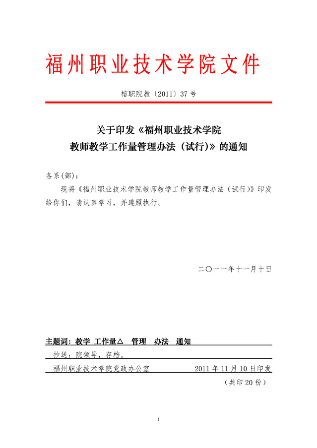 9、教师未能严格执行《福州职业技术学院教师教学规范》,发生教学事故,按《福州职业技术学院教学事故认定和处理暂行办法》处理后,该课时不得计入教师教学工作量定额。