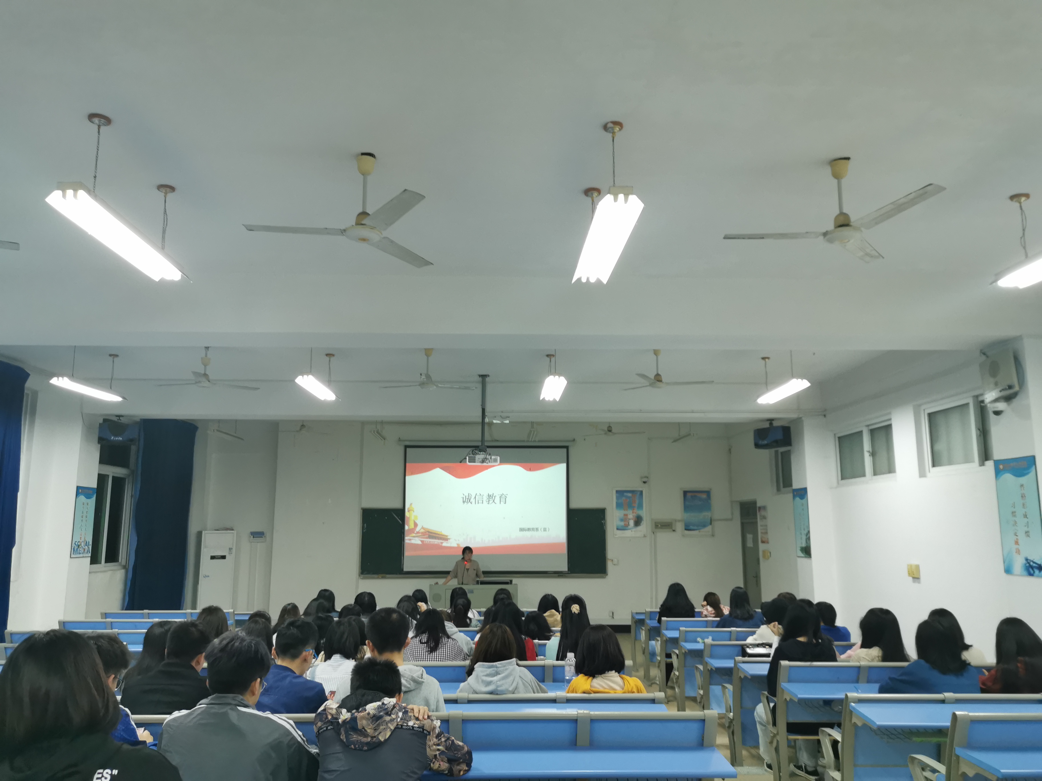国际教育学院2019-12-17 为加强学生诚信意识和责任意识,进一步构建以诚信为荣的校园文化氛围,国际教育学院于2019年12月17日在实验楼211多媒体教室开展以诚信教育为主题的年级大会。此次活动由辅导员严昕担任主讲人,全体2019级学生参加。 大会中,严昕老师讲述了“诚信”二字的深刻内涵,明确了诚信考试,诚信做人的具体要求,严明了考试纪律,并组织全体学生签署了《诚信承诺书》。通过讲解,大家意识到诚实守信既是中华民族的传统美德,也是当代人必须遵守的道德准则。 此次年级大会,进一步弘扬了诚信文化,提高了学生的思想品德素养,使守信为荣,失信可耻的道德观念在学生心中日益深入。 国际教育学院 (图文/尚霜婷)