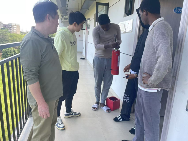 为提高师生消防安全意识,共筑消防安全防火墙,确保校园安全。11月8日,国际教育中心党支部书记叶晓星、学生辅导员以及国际学生在友谊社区开展安全消防检查及宣传活动。
