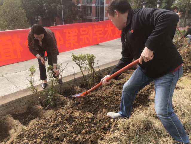 3月12日,第47个植树节如约而至。为深入学习贯彻习近平生态文明思想,深刻践行“绿水青山就是金山银山”的理念,进一步推动文明校园、绿色校园建设,我校举行了以“拥抱春天,共享美好”为主题的植树活动。国际教育中心党支部书记叶晓星、严钦副主任(主持工作)参与此次植树活动。 中心领导团结协作,挥锹培土、扶苗浇水,亲手种下杜鹃花新苗。一棵棵新栽的树苗在微风中轻轻摇曳,将为校园带来更多的氧气与绿意。