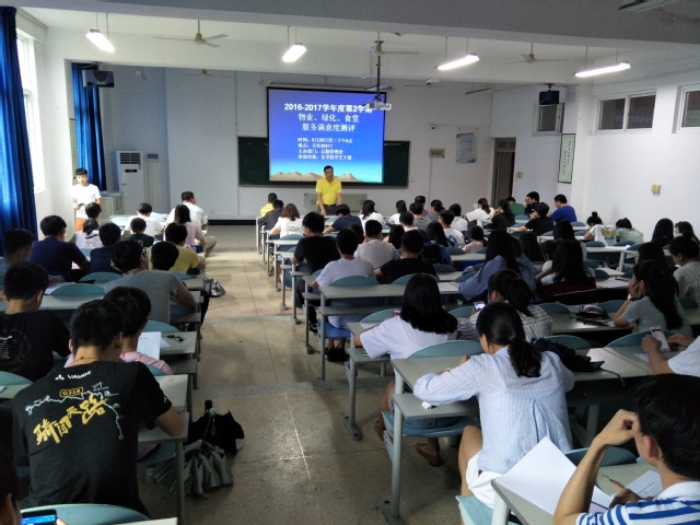 为进一步做好师生的后勤保障服务工作,更好地改进和提高服务水平。6月20日下午,后勤管理处在实验楼411教室组织召开了本学期物业、绿化、食堂等满意度测评会,后勤处领导、学工处领导、物业、绿化、食堂、超市等负责人、学生治校委员会成员及各学院学生干部代表百余人参加了测评会议。