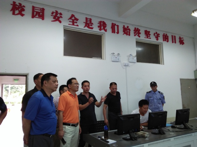 林友隆主任一行先来到学校通往北区的桥上,详细了解学校观察溪源江水位工作情况;随后,至学校监控室了解监控工作情况;最后,至415会议室就防汛抗洪工作召开座谈。
