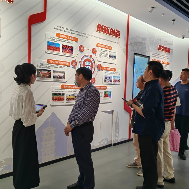 在展厅内,通过讲解员的引领和解说,党员们深刻领略了中国共产党领导下波澜壮阔的福州工运历史;深入学习了习近平总书记在福州工作期间对工人阶级和工会工作的探索和实践;观摩了以党建引领工会发展的各项工作成果;学习了各个时期党员劳模、工匠的先进事迹。