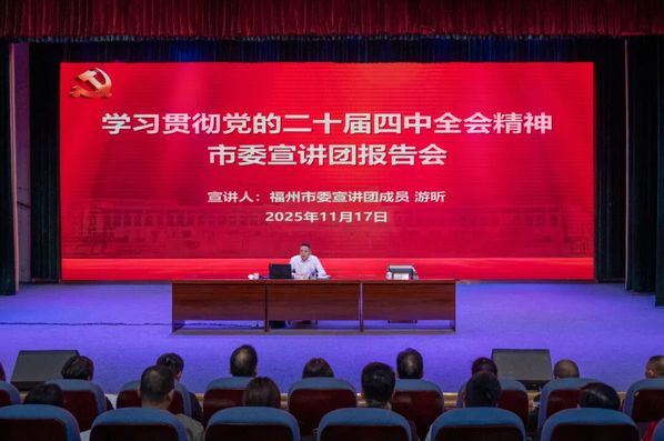 报告会上,游昕紧紧围绕习近平总书记在党的二十届四中全会上的重要讲话精神,宣讲阐释了全会的重大意义,以及“十五五”时期的重要地位,“十五五”时期经济社会发展的指导思想、重大原则、主要目标、战略任务和重大举措、根本保证等有关内容,并结合福州教育发展实际与高职院校职责使命,对学校推动全会精神一贯到底、见行见效提出要求,勉励师生主动对接国家战略长期规划,将个人理想融入区域发展大局,做时代的见证者和未来的建设者,努力在“十五五”期间把学校建设成为一所高水平院校。
