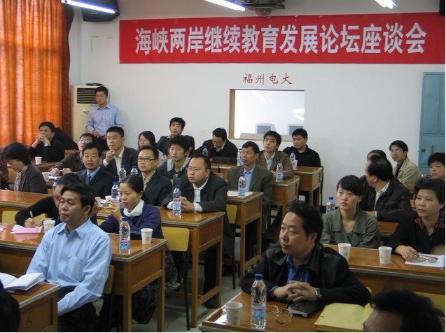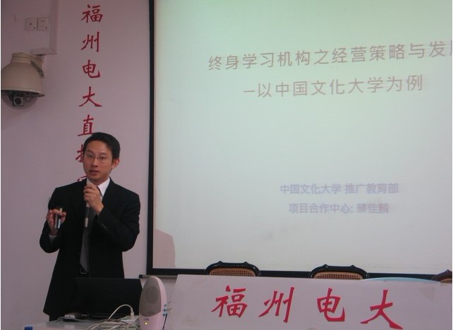 11月26日上午,海峡两岸继续教育发展论坛在福州职业技术学院广达路校区举行。闽江学院、漳州职业技术学院等省内二十余所院校继续教育学院院长参加了研讨会。来自台湾中国文化大学推广教育部项目合作中心的蔡佳麟主任、联合心理咨商所邱永林所长分别以讲座的形式与大家交流了两岸高校继续教育方面的异同。