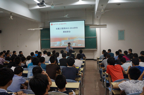 金秋九月,秋高气爽,交通工程系迎来了2013级新生。新生的到来为我系注入了新的活力,为了帮助广大新生在入学第一天快速地了解和把握大学的学习生活,在我系党政领导的带领下,组织开展了新生入学教育活动。?xml:namespace> 9月5号晚上,交通工程系报道新生235名,在多媒体教室开展新生入学教育,并根据不同的专业分别在实验楼411及1号教学楼401开展专项教育。会上,王敏毅副主任向同学们介绍了系部情况,并从系部师资、实训内容等方面为同学描绘了系部的培养之路。郭伟副书记从全程育人、全员育人的角度,针对大学生如何在大学期间树立正确的世界观、人生观、价值观,如何将自己培养成德智体美劳全面发展的大学生进行细致介绍,明确大学奋斗目标和努力方向,以在毕业时给自己交上一份满意的成绩单。专业教研室主任从专业介绍、人才培养、课程设置等方面对新生进行介绍和答疑解惑。新生辅导员针对新生入校初可能遇到的问题,制作了校园小贴士,就防盗、防骗、消防、饮食等方面的知识和技巧、方法等做了说明。一系列的迎新活动为接下来的系统的新生入学教育打下了坚实的基础。 通过入学教育,不仅让新生们对交通工程系有了较清楚的认识,对大学生活和专业有了一定的而了解,更坚定了他们的学习信心。同学们纷纷表示,新生入学教育对于刚迈进大学校园的他们来说,具有非常重要的教育意义,它将成为同学们今后学习生活的指向标。
