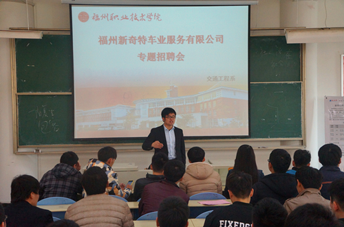 - 12月25日,我系在一号楼401教室举办福建省新奇特车业服务有限公司专场招聘会。辅导员、部分教师、大三学生们皆参加了本次招聘会。