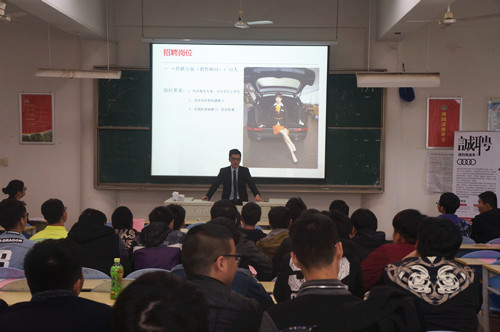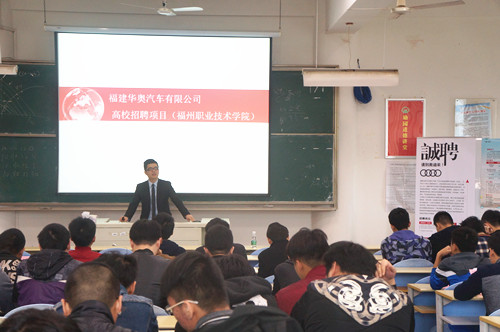 2016年11月25日上午,泉州华奥销售有限公司受我系邀请于一号楼401为我系2014级汽车专业的同学们举办专场招聘会。 招聘会开始,泉州华奥销售有限公司销售经理通过播放宣传片、PPT展示、面对面交流等方式向同学们介绍公司的概况、职业发展方向、人员需求和未来规划等情况。在初步了解公司的情况后,同学们纷纷提出自己的疑问,泉州华奥销售有限公司销售经理也认真地为同学们一一解答,从而做到进一步的了解。招聘会结束,有意向的同学也提交了自己的简历。 此次招聘会为企业与应聘学生提供广阔的供需见面平台,为双方的自主选择和沟通交流创造快捷的通道。