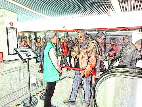 还有一次一位大爷上前来问志愿者地铁列车一共多长,大爷说据他来看一节有个23米左右,在志愿者的指引下大爷询问了工作人员得到了答案,然后大爷一脸严肃地对志愿者说:“小同志啊,我跟你说这地铁列车长118米,一节就是23米左右的嘛。”志愿者就强忍着笑意说:“哈哈哈受教啦。”。