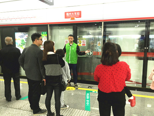 ★365星级志愿者名片★【星级人物】之 地铁篇 好帮手好榜样 (陈靖雯/文 陈靖雯/图) 今天是福州地铁正式试运营的第三天,来乘坐地铁的乘客还是络绎不绝,也许是临近春节,提着大包小包行李回家的乘客越来越多,在有增无减的客流中,志愿者们迎难而上,发扬着志愿者不怕苦、不怕累的精神,展现了福职院交通工程系学子良好的精神面貌。 学子王坤强同学是创新创业协会的副会长并且兼任福职院福州地铁志愿者A队的负责人,他事必躬亲,绝不打马虎眼儿,将老师们交由他的任务都完成地十分出色,是老师们的好帮手也是志愿者的好榜样。今天站台引导岗是由王坤强同学负责,包括两个方面的内容,注意扶梯的乘客安全与接车。站台五部曲有五个动作,动作意思分别是:首先,请乘客按箭头方向排队;第二,请乘客不要拥挤;第三,请乘客先下后上并劝阻乘客抢上;第四,请乘客上车,并往车厢中部走;最后,当列车灯闪铃响是阻止乘客上车。站台五部曲,虽然很不起眼,还有可能被乘客用异样的眼光看待,但是王坤强同学还是认认真真地重复着这五个动作。 所谓,干一行,爱一行,专一行。作为志愿者必须先要热爱自己的工作,然后才能专心致志地做好本职工作。 |