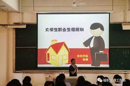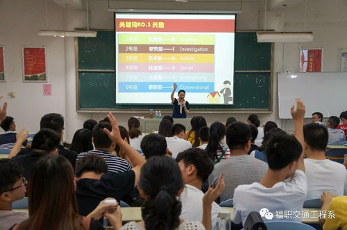 为了帮助同学们了解所学专业及其就业前景,使同学们了解到职业规划的重要性,并为学院新生的职业规划提供不可或缺的指导,2017年9月20日下午四点,交通工程学院“大学生职业生涯规划指导讲座”在一号楼401教室进行开讲。本场讲座邀请了杨颖老师为2017级运管、车辆、五贯班学生进行职业规划指导。 首先,杨颖老师向同学们简单的介绍了自己。随后,她从“目标”开始讲起,我们作为一名大学生,首先应有一个清醒的自我认识,从思考中确立自我,从学习中寻求真理,从独立中体验自主,从表达中锻炼口才,从交友中品味成熟,从实践中赢得价值。一一讲述了如何做一名合格的大学生。同时又告诉在场的新同学,在了解了怎样做一名合格的大学生之后,更重要的就是如何规划自己三年的大学生活,从而为未来的工作打下坚实的基础。 为了使同学们更好的理解职业规划,杨颖老师将职业规划分成了三大步骤:第一步:树立目标,促进行动;第二步:了解生涯,实现“人职匹配”;第三步:明确兴趣和性格,学习技能;杨颖老师详尽地讲解了每一步,并在互动中向同学们阐释了原理。 最后,杨颖老师给大家总结职业生涯规划:树立职业精神;建立目标意识、规划意识;学会学习、做事、做人。 本次讲座在现场同学热烈的掌声中圆满结束,同学们纷纷表示受益匪浅。杨颖老师的精彩讲座不仅消除了同学们对于专业前景的迷茫感,同时也让同学们更加明确自己如何进行职业规划。愿交通工程学院2017级同学都能开创出自己的一片天地!