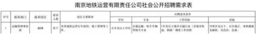 根据工作需要,南京地铁运营有限责任公司现面向社会公开招聘部分生产岗位,公告如下: