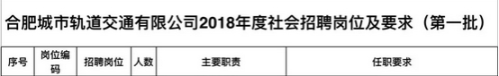 合肥地铁2018年社会招聘公告