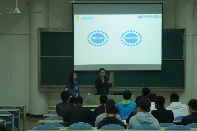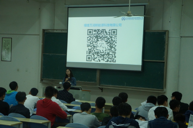 发布者: 发布时间:2017-11-15 浏览次数:374 福建万润新能源科技有限公司举办专场招聘会 交通工程学院-创业部-2017-11-15 为拓宽毕业生的就业渠道,增加毕业生就业机会,2017年11月15日上午,交通工程学院诚邀福建万润新能源有限公司在一号楼501教室为2015级汽车一班、二班,2013级五贯班学生召开专场招聘会,由市场专员李明珠主讲。 福建万润新能源科技有限公司是一家以新能源汽车动力总成的研发、生产、销售和技术服务为主营的高科技企业,其研发中心坐落于福州高新区海西创新园,生产基地位于福建青口汽车城的五虎山工业区。其中福建万润的总成产品包含:整车控制器、电机、电机控制器、变速传动系统以及储能器,各部件系列覆盖了新能源客车、新能源乘用车、新能源专用车等主要类别,形成了从小到大的、较完整的产品型谱。招聘会上,福建万润新能源科技有限公司的市场专员李明珠向同学们详细介绍了公司的发展历史、公司概况、工作环境、住宿条件、薪资待遇等,并以PPT的形式直观地展示了公司丰富多彩的业余活动。 招聘会结束之后,李明珠市场专员和同学们进行了详细的一对一的问题解答,并接受了大家的纸质简历,许多毕业生同学也收获到理想的岗位。 图文/蒋璐琳