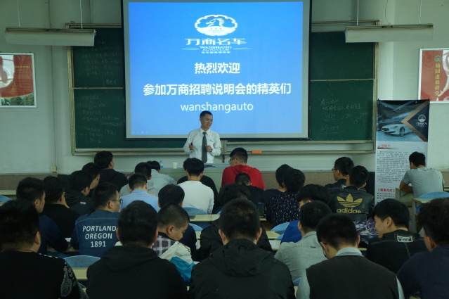 发布者:蒋璐琳 发布时间:2017-11-14 浏览次数:356 万商名车举办专场招聘会 交通工程学院-创业部-2017-11-14 2017年11月14日上午10点,万商名车受交通工程学院邀请在一号楼301教室为2015级汽车一班、二班,2013级五贯班的同学们举办专场招聘会,并邀请了培训总监陈育彬主讲。 招聘会开始,陈育彬总监首先对同学们介绍了公司的业务范围,从而谈到汽车周边行业的发展趋势和公司今后的发展方向。其次陈育彬总监具体了介绍“万商名车”的发展近状,对同学们语重心长的讲述了公司对未来的的规划和需求,并且详细的说明了公司对员工的要求以及相关福利。最后,从学校毕业出去的学长们向同学们介绍各自的工作范畴,万商名车将大力加强公司内部人才培养,使员工们能够获得更多的学习以及实践的机会来加强自身的专业能力。 最后,本次招聘会在现场同学热烈的掌声中圆满结束,同学们纷纷表示受益匪浅。陈育彬总监的精彩介绍不仅消除了同学们对于专业前景的迷茫感,同时也让同学们更加了解了万商名车。同时现场的同学向应聘部门的主管提出了问题,由相应部门主管耐心回答并得到满意的答复。愿交通工程学院毕业生同学们都能开创出自己的一片天地! 图文/蒋璐琳