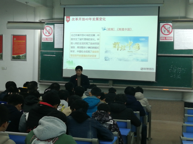 发布者: 发布时间:2019-01-10 浏览次数:1564 为了深入学习领会习近平新时代中国特色社会主义思想,认真学习宣传贯彻党的十九大精神,2019年1月9日下午,交通工程学院王敏毅院长在一号楼301教室举办了以“改变中国,影响世界”为主题的形势与政策讲座,我院80余名学生聆听了此次讲座。 王敏毅院长深入解读了党的十九大报告的结构和内容,并从十个方面总结了过去五年的工作和历史性变革。同时,他从学校层面出发,介绍了我校学习宣传贯彻十九大精神的重要举措以及今后的主要工作。他提到,习近平总书记明确强调,当前和今后一个时期,全党全国全军的首要政治任务就是学习贯彻党的十九大精神。 本次专题讲座学生们聚精会神聆听,王敏毅院长风趣生动话语不时引起大家的共鸣,让交通工程学院学生明白了初心不改,矢志不渝,坚持以习近平新时代中国特色社会主义思想为指引,更加牢固树立“四个意识”,更加坚定“四个自信”,埋头苦干、改革创新,做一个心胸开阔,乐观诚实,具有奉献精神,有益于社会的“大写”的人。此次形势与政策课传递了党的十九大精神,在我院营造了浓厚热烈的学习宣传氛围。