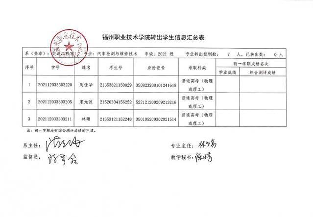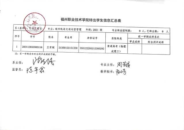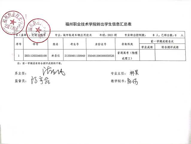 交通工程学院转出学生信息公示