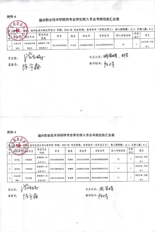 交通工程学院2021-2022(1)转专业转入考核情况公示