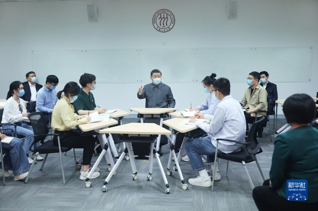 4月25日上午,中共中央总书记、国家主席、中央军委主席习近平来到中国人民大学考察调研。这是习近平在立德楼观摩思政课智慧教室现场教学并参与讨论。新华社记者 燕雁 摄 上午9时20分许,习近平在中国人民大学党委书记张东刚、校长刘伟陪同下,首先来到立德楼,观摩思政课智慧教室现场教学。习近平同青年学生一起就座,认真倾听并参与讨论,对学校立足自身优势,不断推进思政课教学改革创新,打造高精尖水平思政课的做法表示肯定。他强调,思想政治理论课能否在立德树人中发挥应有作用,关键看重视不重视、适应不适应、做得好不好。思政课的本质是讲道理,要注重方式方法,把道理讲深、讲透、讲活,老师要用心教,学生要用心悟,达到沟通心灵、启智润心、激扬斗志。青少年思想政治教育是一个接续的过程,要针对青少年成长的不同阶段,有针对性地开展思想政治教育。希望人民大学绵绵用力,久久为功,止于至善,为全国大中小学思政课教学提供更多“金课”。也鼓励各地高校积极开展与中小学思政课共建,共同推动大中小学思政课一体化建设。习近平勉励同学们坚定中国特色社会主义道路自信、理论自信、制度自信、文化自信,在全面建设社会主义现代化国家新征程中勇当开路先锋、争当事业闯将。