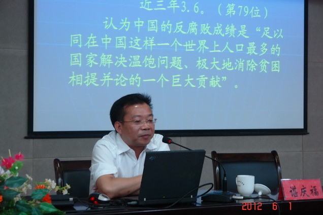 为加强学院党风廉政建设工作,落实学院开展“保持党的纯洁性、当人民满意的教育工作者”主题教育活动,切实推进党风廉政建设和反腐败工作,6月1日下午,院纪委邀请省纪委效能监察室谌庆福主任作了题为《学习贯彻<廉政准则>,始终保持清正廉洁》的讲座。讲座由纪委沈锦华书记主持,林承超院长、党委林福荣副书记、学院全体副科级以上领导干部、全体辅导员、院党风廉政及党务公开监督员、纪委委员和各党总支、直属党支部及教师、学生党支部书记、副书记、支委等共80多人聆听了讲座。
