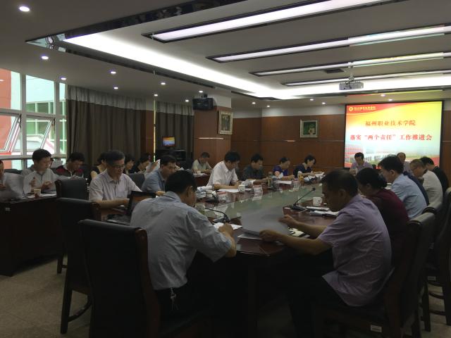 2016年9月14日上午,学院召开落实“两个责任”工作推进会。院领导班子成员、各部门负责人、各系部党政负责人、纪委委员、党风廉政及效能监督员共50余人参加了会议。会议由院纪委书记庄晓钟同志主持。
