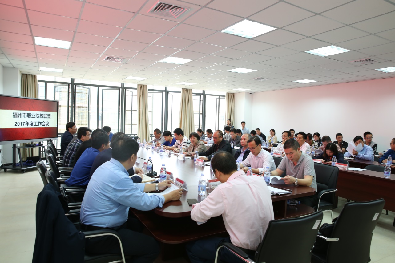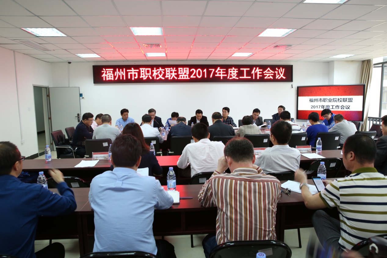 4月21日,福州市职校联盟2017年度工作会议在福州市职业教育公共实训基地会议室顺利召开。福州市教育局严星调研员、职成处处长江堃俤、高教处处长何睦童、职校联盟理事长福州职业技术学院校长李秋斌、副理事长福州市职业教育公共实训基地主任蔡宗松等出席会议,与来自联盟院校8所中职学校领导以及福州职业技术学院的各工作组、实训基地的工作人员齐聚一堂,总结工作,部署任务,共谋发展。会议由职校联盟秘书长欧阳少鸣主持。