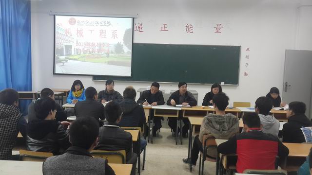 为贯彻院党委关于开展党的群众路线教育实践活动相关会议精神,开展以“三访三问三为”为主要载体的教育实践活动,帮助解决中职生源学生在校学习过程中出现的实际问题,机械工程系于2014年3月6日在实训楼408教室召开了2013级数控技术专业中高职衔接师生座谈会。陈天凡副主任、夏勇副书记、教研室主任、课任教师、辅导员、教学秘书以及2013级数控2班的全体同学参加了座谈会。