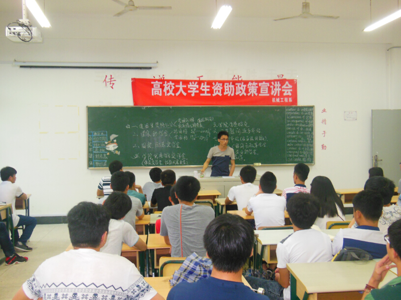 在2015年5月20日这个特别的日子里,机械工程系学生资助负责人陈亮贤老师在实训楼409教室开展了一场大学生资助政策宣讲会。会上,陈亮贤老师详细介绍了国家和学院资助政策内容以及申请条件和要求,让同学们对高校家庭经济困难学生资格认定、国家助学金、国家助学贷款、国家奖学金及国家励志奖学金、福州职业技术学院优秀学生奖学金、家庭经济困难学生学费减免及缓交等等各项资助政策有了系统全面的学习和了解,并明确了各项资助政策申请条件和要求。