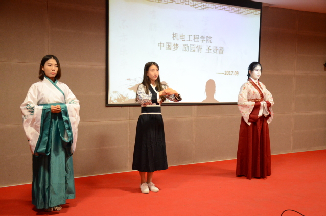 2017年9月27日,机电工程学院在学术报告厅成功举办以“中国梦 励园情 圣贤音”为主题的优秀传统文化经典诵读活动。