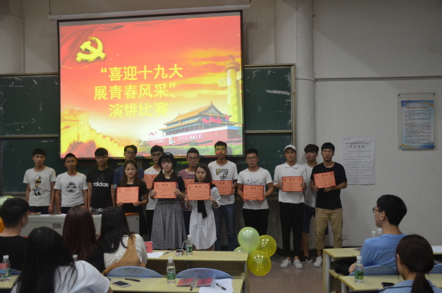 为迎接党的十九大的顺利召开,激发学生的爱国热情,展现学生青春风采,机电工程学院于2017年10月17日晚上在学校1号教学楼成功举办了一场以“喜迎十九大,展青春风采”为主题的演讲比赛,全院100多名师生参加了本次演讲比赛活动。