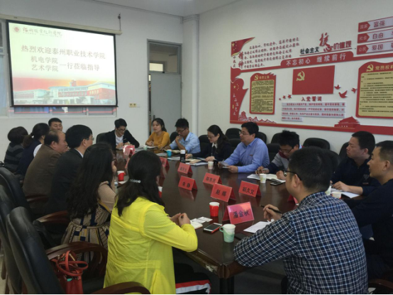 泰州职业技术学院机电技术学院党总支徐步荣书记、艺术学院党总支方祝根书记一行到访我校机电工程学院,就“双创”及学生教育工作等进行交流学习。机电工程学院党政领导、辅导员、“双创”指导老师等热情接待了来宾并开展对口交流。