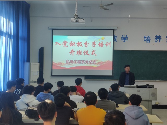 为学习贯彻习近平新时代中国特色社会主义思想和党的十九大精神,不断提高入党积极分子的思想政治素质和政治理论水平,进一步提高入党积极分子对党的认识,明确入党目的,端正入党动机,坚定理想信念,解决入党积极分子思想入党问题,为光荣加入党组织奠定坚实思想基础。根据《中国共产党发展党员工作细则》和党员教育管理有关要求,结合学校《关于开展2021-2022学年第一学期入党积极分子培训工作的方案》,2021年11月3日,机电工程学院在实训楼301教室隆重举办入党积极分子培训开班仪式,71名入党积极分子参加。