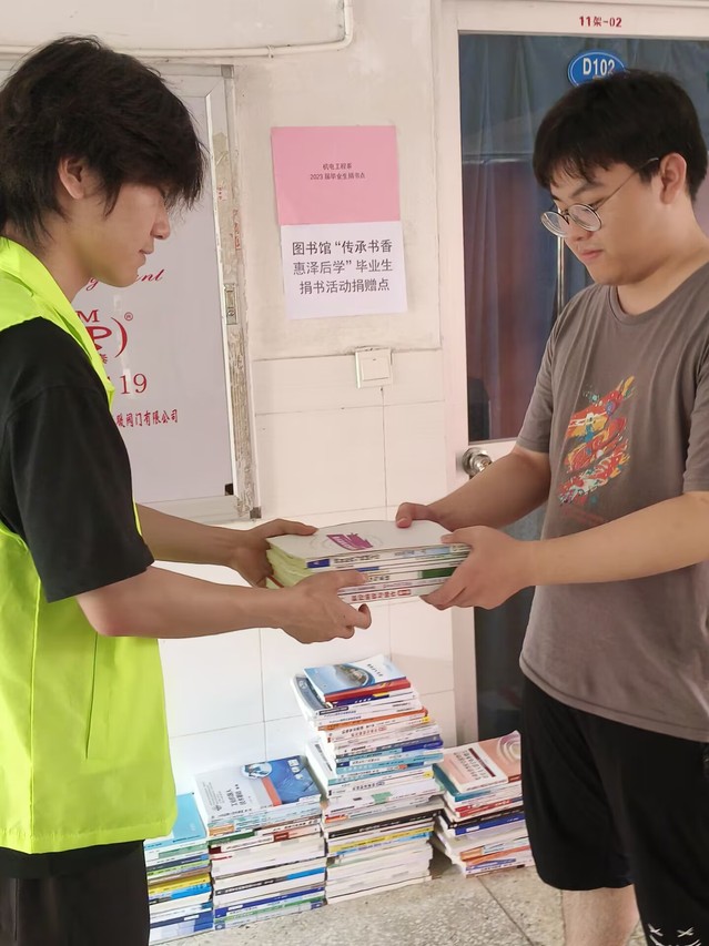 为让书籍发挥最大价值,体现新时代节约型校园建设,由图书馆主办的读者协会“传承书香,惠泽后学”2023届毕业生捐书活动于6月19日上午在学生宿舍楼开展。