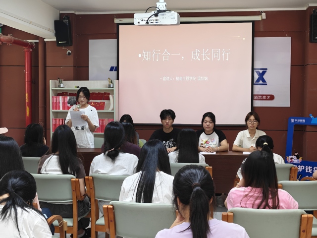 她分享了自己在三创竞赛和校园文化活动中的成长故事,探讨扎根专业、服务社会的理念。她在三创竞赛中与团队一起以科技助力乡村振兴,在实践中深化了对专业知识的理解运用,培养了团队协作和创新思维,也为乡村发展贡献了力量;同时她积极参与校园文化活动,在啦啦操相关活动中领悟到团队的力量。她认为成长需要扎根专业知识并在实践中磨砺,希望大家积极投身实践,用实际行动书写成长篇章,让专业知识在服务社会中绽放光芒